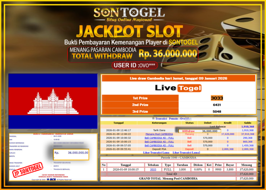 Berikut ini adalah BUKTI JP SONTOGEL yang sudah diproseskan ke rekening member kami