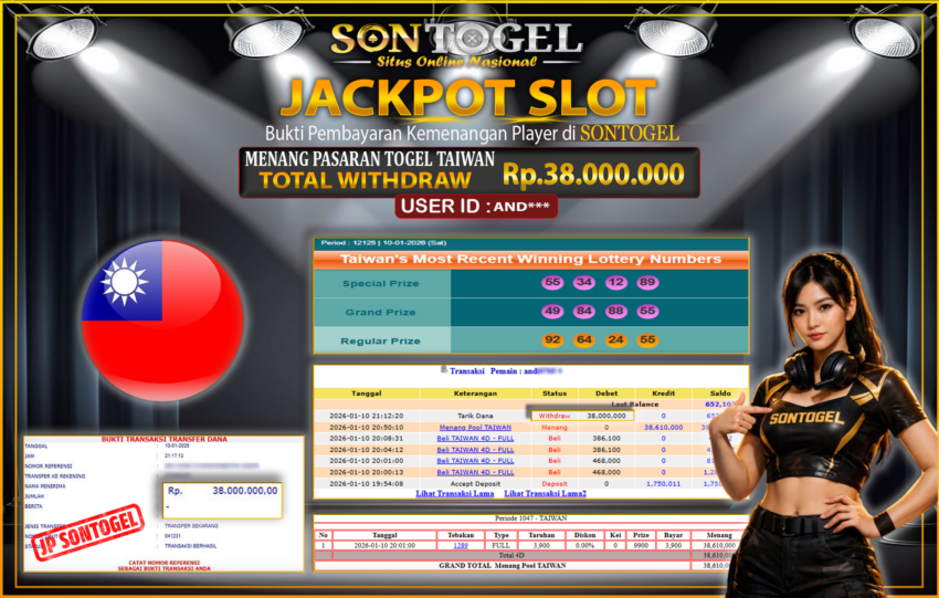 BUKTI JP SONTOGEL – Situs Togel Online, Live Casino dan Slot Online Terpercaya yang terbukti membayar berapapun kemenangan Anda tanpa kekurangan sepeserpun. Jika Anda masih mencari Situs Terpercaya, jangan ragu untuk bermain di SONTOGEL. Dalam 1 akun Anda bisa menikmati semua permainan dengan minimal deposit hanya Rp. 5.000,- saja.