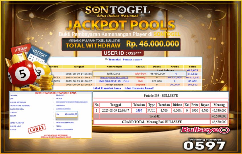 Berikut ini adalah BUKTI JP SONTOGEL yang sudah diproseskan ke rekening member kami