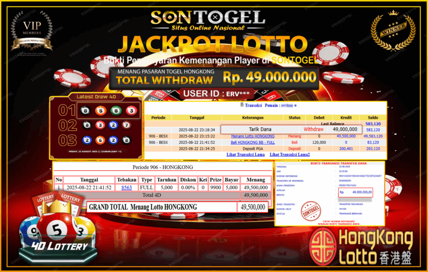 BUKTI JP SONTOGEL – Situs Togel Online, Live Casino dan Slot Online Terpercaya yang terbukti membayar berapapun kemenangan Anda tanpa kekurangan sepeserpun. Jika Anda masih mencari Situs Terpercaya, jangan ragu untuk bermain di SONTOGEL. Dalam 1 akun Anda bisa menikmati semua permainan dengan minimal deposit hanya Rp. 5.000,- saja.