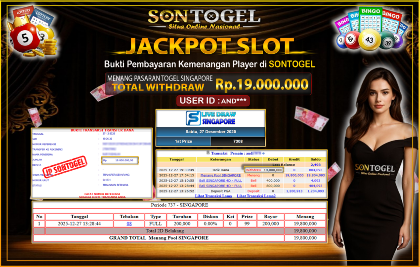 BUKTI JP SONTOGEL – Situs Togel Online, Live Casino dan Slot Online Terpercaya yang terbukti membayar berapapun kemenangan Anda tanpa kekurangan sepeserpun. Jika Anda masih mencari Situs Terpercaya, jangan ragu untuk bermain di SONTOGEL. Dalam 1 akun Anda bisa menikmati semua permainan dengan minimal deposit hanya Rp. 5.000,- saja.