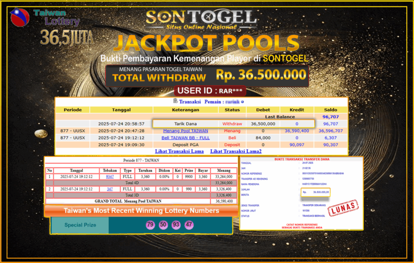 Selamat Kepada Member SONTOGEL dengan USER ID :RAR*** PASARAN TOGEL TAIWAN sebesar RP.36.500.000,- LUNAS langsung di transfer ke rekening member tanpa kurang sepeserpun. Terimakasih telah mempercayakan SONTOGEL sebagai Situs Online Terpercaya dan Aman! Jangan tunggu tunggu lagi! langsung saja daftarkan akun bermain di SONTOGEL dan dapatkan bonus berlimpah setiap minggunya.