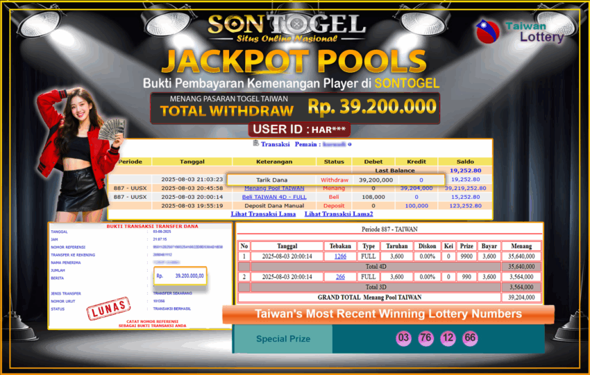 Berikut ini adalah BUKTI JP SONTOGEL yang sudah diproseskan ke rekening member kami