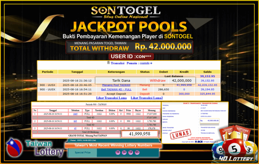 JP SONTOGEL PASARAN TOGEL TAIWAN Rp.42.000.000