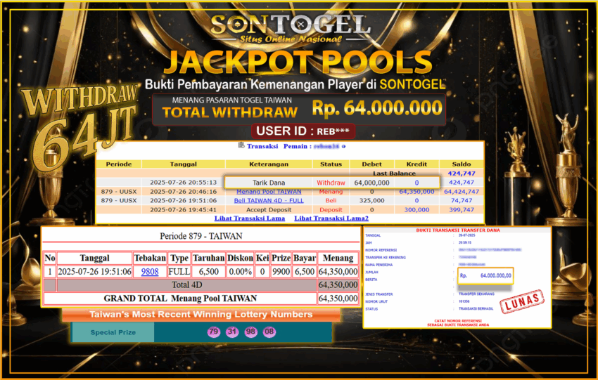 Berikut ini adalah BUKTI JP SONTOGEL yang sudah diproseskan ke rekening member kami