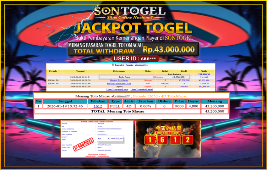 Selamat Kepada Member SONTOGEL dengan USER ID : ABR*** JP SONTOGEL PASARAN TOTO MACAU Rp.43.000.000,- LUNAS langsung di transfer ke rekening member tanpa kurang sepeserpun. Terimakasih telah mempercayakan SONTOGEL sebagai Situs Online Terpercaya dan Aman! Jangan tunggu tunggu lagi! langsung saja daftarkan akun bermain di SONTOGEL dan dapatkan bonus berlimpah setiap minggunya.