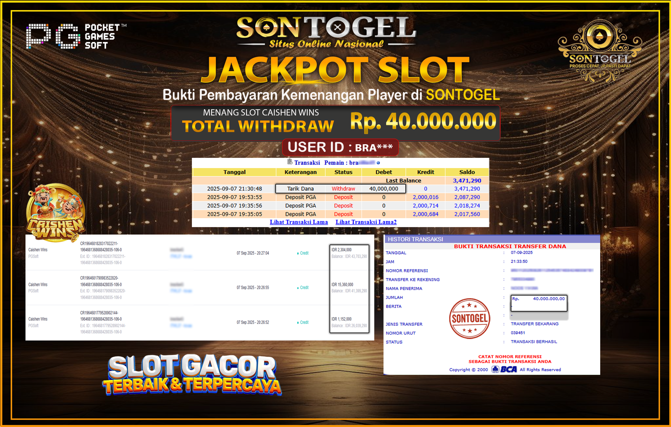Berikut ini adalah BUKTI JP SONTOGEL yang sudah diproseskan ke rekening member kami