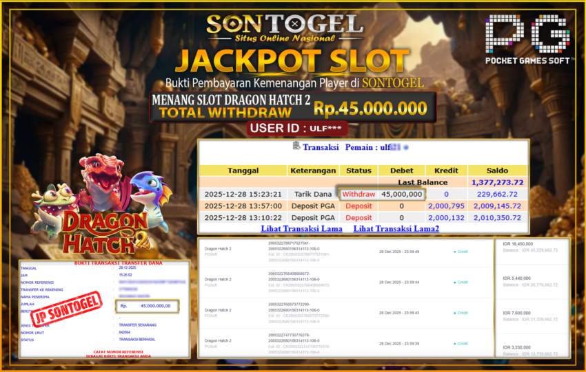 JP SONTOGEL SLOT DRAGON HATCH 2 Rp.45.000.000
