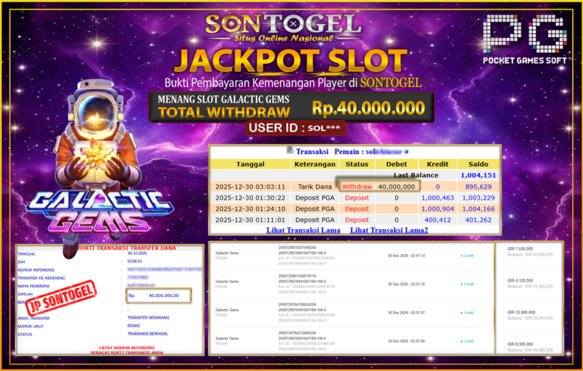 JP SONTOGEL SLOT GALACTIC GEMS Rp.40.000.000