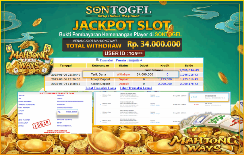 JP SONTOGEL SLOT MAHJONG WAYS Rp.34.000.000