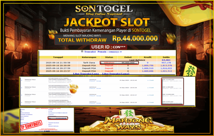 JP SONTOGEL SLOT MAHJONG WAYS Rp.44.000.000