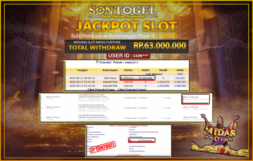 JP SONTOGEL SLOT MIDAS FORTUNE Rp.63.000.000