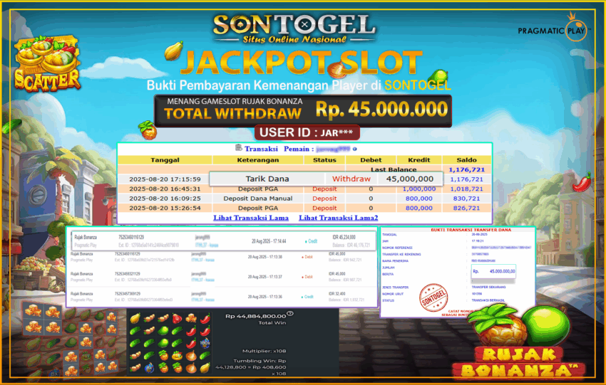 JP SONTOGEL SLOT RUJAK BONANZA Rp.45.000.000