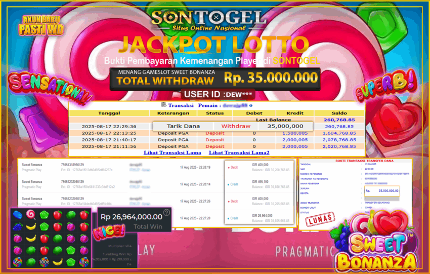JP SONTOGEL SLOT SWEET BONANZA Rp.35.000.000