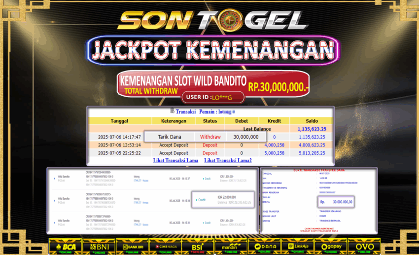 Berikut ini adalah BUKTI JP SONTOGEL yang sudah diproseskan ke rekening member kami