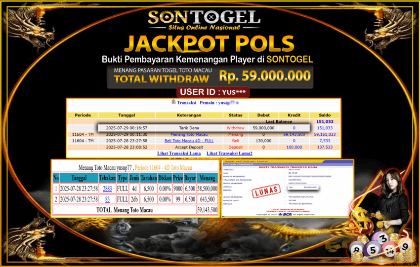 Berikut ini adalah BUKTI JP SONTOGEL yang sudah diproseskan ke rekening member kami