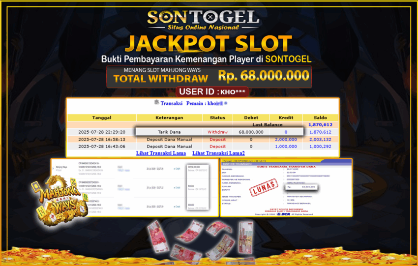 Berikut ini adalah BUKTI JP SONTOGEL yang sudah diproseskan ke rekening member kami